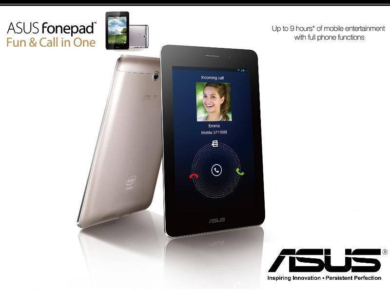 Asus Fonepad 7 AS-ME175CG 7" IPS INTEL Clover Trail Plus Z2520 1.2GHz Dual Core CPU 1GB(1066MHz) EMMC 8GB SGX544MP2 Graphics 300MHZ Android Jelly Bean 4.3 N/A 802.11a/b/g/n Bluetooth 4.0 Intel® XMM™ 6360 platform 15 Wh, 3.8V, 3910mAh; non-removable polymer battery