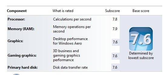(Below image: Win7 WEI Graphics Score 7.6 out of 7.9) Win8 RC WEI Graphics Score 7.8 out of 7.9