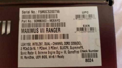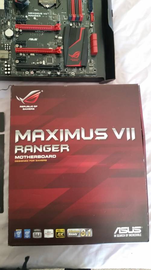 Asus Z97 Maximus 7(Vii) Ranger ROG series : all-in-one LGA1150 mb ,Evolving on behalf of gamers everywhere ROG unveils Maximus VII Ranger Motherboard to focus on what matters most to gamers! Upholding the ROG gaming legacy. ASUS ROG proudly announced the 7th gen of the MAXIMUS VII Ranger, designed for what matters most to gamers. Based on the Intel Z97 chipset, the new Maximus VII Ranger offer users a refined gaming experience with innovation of essential features for day-to-day use. Features • LGA1150 socket for 4th, new 4th, 5th Generation IntelCore i7/ i5/ i3/ Pentium / Celeron Processors • Intel Z97 Express Chipset • SupremeFX - Precision-engineered audio that's as great as a dedicated sound card! • Sonic Studio - Brilliant one-click virtual sound! • GameFirst III - Network-optimization software for no-delay gameplay! • KeyBot - Your keyboard, instantly upgraded! • Gamer's Guardian - All-round protection provides the best quality, reliability and durability! High-value entry-level ROG gaming.ATX-board with superb specifications and game-boosting features. Intel LGA1150 4th, New 4th & 5th-Generation Core i7/Core i5/Core i3/Pentium/Celeron Processors Ready. Intel Z97 Express Chipset with M.2 support (up to 10Gb/s data-transfer). Intel Ethernet + LANGuard + GameFirst III -This is game networking taken to the next level. This is ROG. SupremeFX 2014 + Radar II - New and improved audio that's beyond compare. KeyBot + TrueVolt USB - Instant keyboard upgrade and rock-steady 5V USB supply. USB UEFI BIOS and Secure Erase - Award-winning simplicity and factory-fresh conditioning for superb performance.
