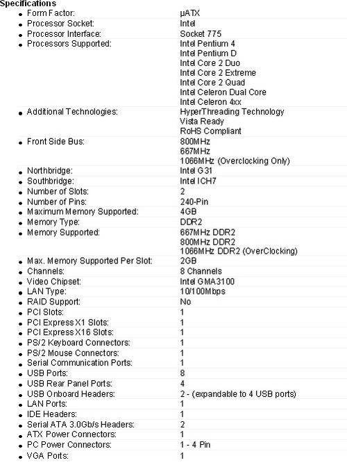 ASUS P5KPL-AM SE Motherboard - Intel G31, Socket 775, µATX, Audio, Video, PCI Express, 10/100 LAN, USB 2.0, Serial ATA