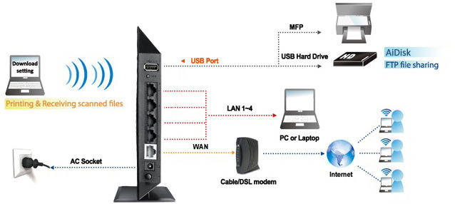 With more and more current devices equipped with wireless capability, users can now enjoy different functions without the limitation of space through wireless connection. User can also now use the versatile USB application such as wireless printing, FTP server, and AiDisk while setting up a wireless connection solution throught out right at home.