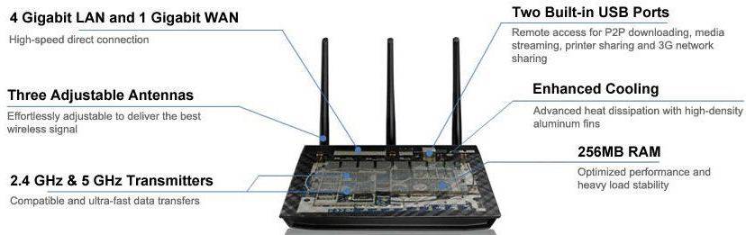 The ASUS RT-N66U dual-band wireless-N900 gigabit router delivers incredible performance and coverage range. With new ASUSWRT UI, quickly setup your network, customize user access, and monitor signal strength. Following the award-winning RT-N56U, the RT-N66U increases Wi-Fi speed for both 5 GHz and 2.4 GHz transmission by 50% up to 900Mbps that makes it ideal for bandwidth demanding tasks such as 3D HD video streaming, multiplayer gaming, USB hard drive file sharing, and USB connected printer sharing. Built-in Wi-Fi amplifiers make the RT-N66U the perfect wireless router for larger, multi-level homes and buildings with signal range that reaches virtually any area.