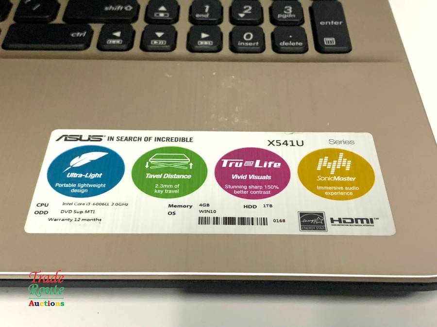 ASUS X541UAK 15.6inch FULL HD LAPTOP | CORE i3 6006U 2.0GHZ | 4GB RAM | 1TB HDD