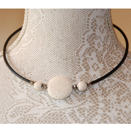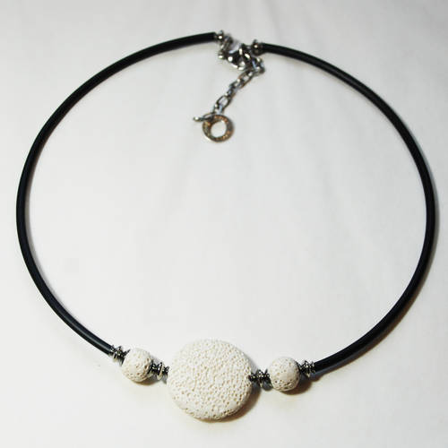 Black silicon & white lava coin choker necklace with stainless steel chain & clasp