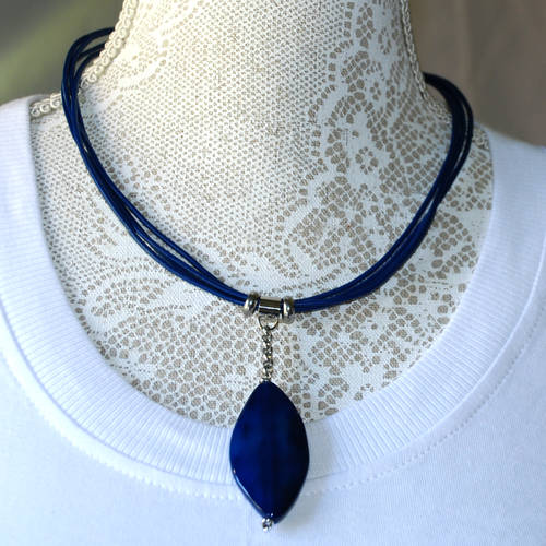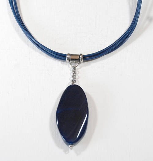 2mm thick dark blue colour cowhide leather cord with natural blue agate gemstone pendant