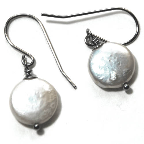 Atenea handmade natural white coin freshwater pearl earrings on stainless steel ear wire