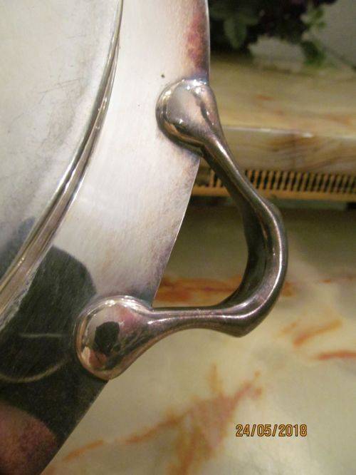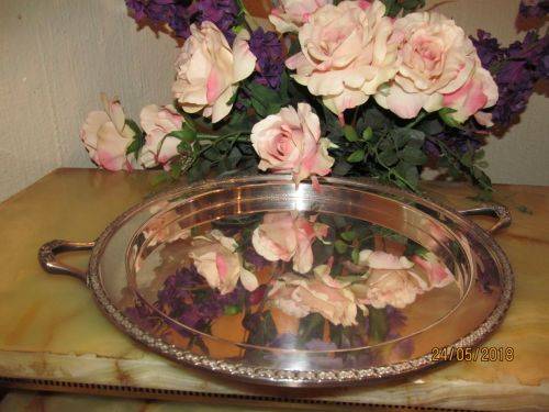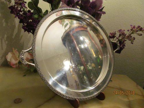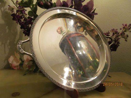 MANUFACTURED BY ATKINS BROTHERS, SHEFFIELD BEFORE 1925 WHEN THE COMPANY BECAME A LIMITED LIABILITY ENTITY, THIS ANTIQUE SILVER PLATED TRAY IS IMMACULATE FOR SERVING DRINKS ETC AND HAS A PAIR OF ORNATE EMPIRE STYLE HANDLES ATTACHED AS WELL AS A FITTED RIM WHICH IS ALSO BEAUTIFULLY ENHANCED IN THE EMPIRE PATTERN