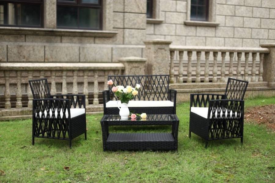 Atlanto 4 Piece Wicker Patio Outdoor Living Set - Black