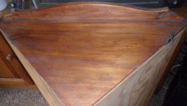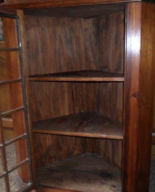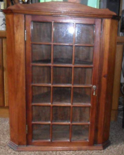 ATTRACTIVE WOODEN CORNER CABINET - 3 SHELVES - GLASS DOOR -IT MEASURES 76 LENGTH X 62CM WIDTH X 44CM X 44CM CORNER SECTIONS - PLEASE VIEW PHOTOGRAPHS - SORRY TOO LARGE TO POST - FOR COLLECTION ONLY-