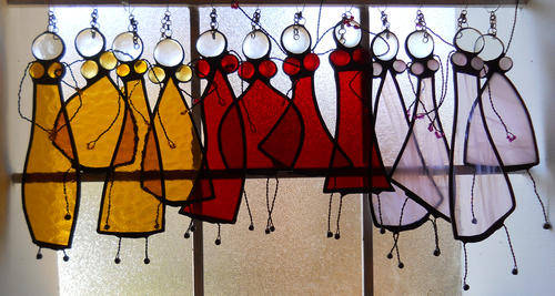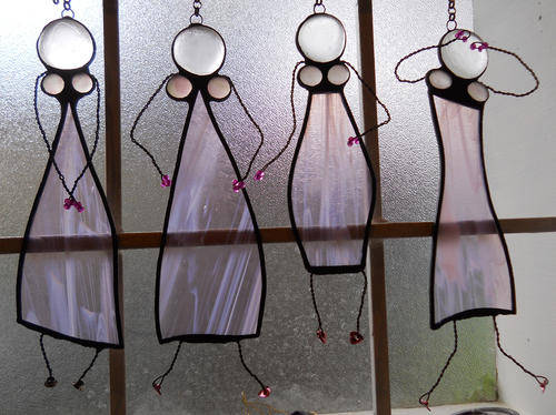 Tayama Glass Art, Crafts & CollectiblesWelcome to my world of glass, to which I am drawn constantly because of their endless possibilities and many facets. I have always been a creative being but the moment I mastered something, I have seem to loose interest. Everything changed when I stumbled across glass. I am a warm glass artist but can’t resist any challenge when it comes to glass and therefore I am also exploring the art of stained glass and mosaics. When buying a handmade item, you are buying more than just an item, object or piece of art. You are buying hundreds of hours of failures and experimentation. You are buying days, weeks and months of frustration and moments of pure joy. You aren’t just buying a thing, you’re buying a piece of someone’s heart, part of a creative soul, a moment of someone’s life. You are helping them to keep their dream alive, but most importantly, you’re buying the artist more time to do something they are passionate about. ~ Anonymous | Stained Glass Boobie Dolls to hang in your kitchen window for example