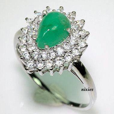ATTRACTIVE EMERALD 925 STERLING SILVER RING - SIZE 9(S)
