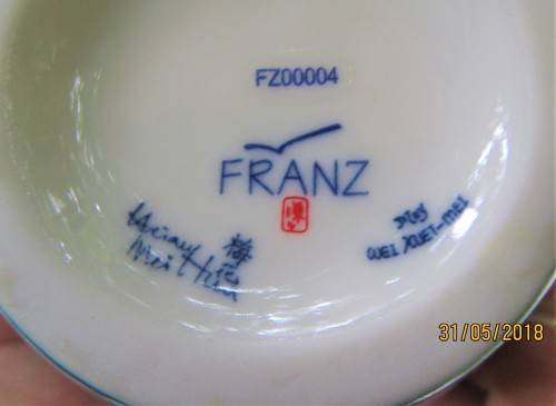 Unusual vase decorated in the Morning Glory pattern, seldom seen anymore. Made by Franz. Measures approximately 16 cm high, 9 cm widest. hand painted. No chips, cracks, crazing and not repaired.