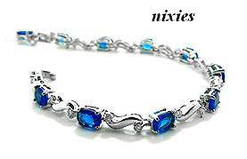 ATTRACTIVE WHITE GOLD EP BLUE & WHITE SAPPHIRE BRACELET