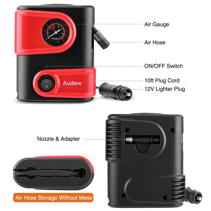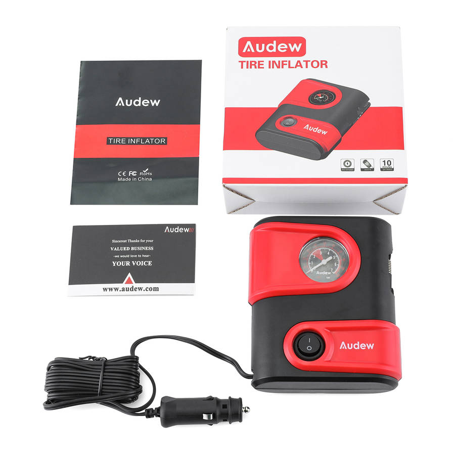 AUDEW12V DC Tire Inflator, Portable Mini Air Compressor Pump, Auto Tire Pump for Car, Bike, Motorcycle, SUV and Other Inflatables