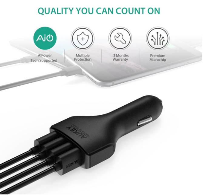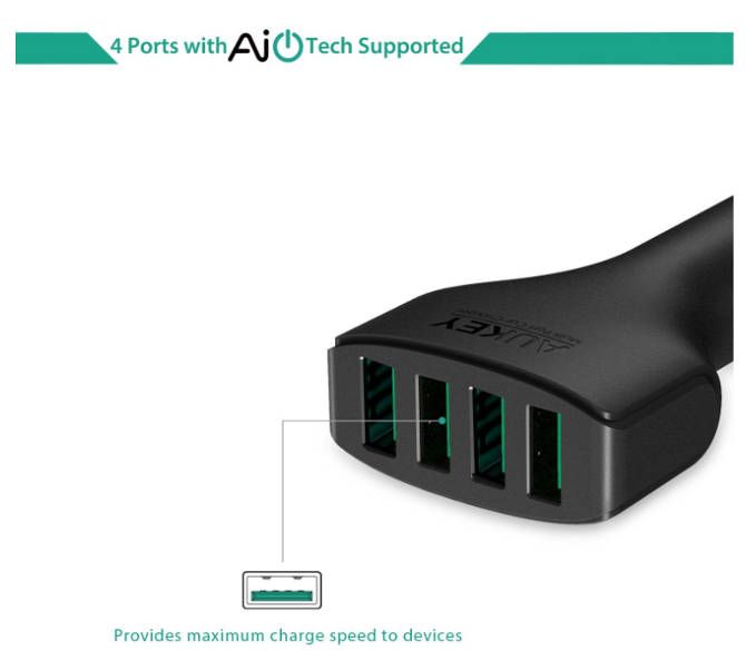 Aukey CC-01 is an AIPower charging technology supports healthier battery function and faster-charging speeds. AiPower recognizes the charging requirements of your USB powered devices and matches power output for safe and efficient charging. Charge 4 devices simultaneously at full speed with 2.4A of dedicated power output per USB port.Advanced circuitry and built-in safeguards protects your devices against excessive current, overheating, and over charging.