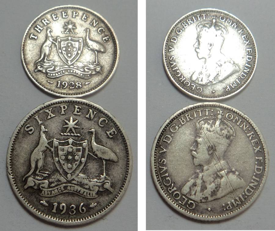 Australia: King George V Silver 3d (1928) and 6d (1936)