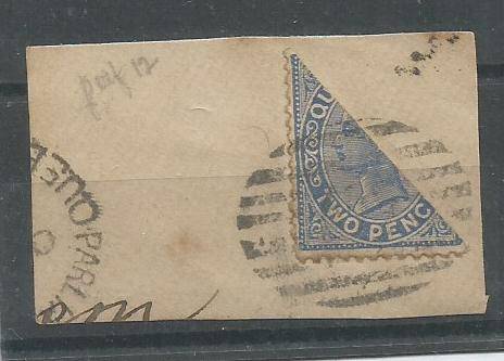 AUSTRALIA QUEENSLAND 1887/92 QV 2d blue perf 12 bisected on piece to be used as 1d, fine used. (mentioned in SG but unpriced). SG 180 var..