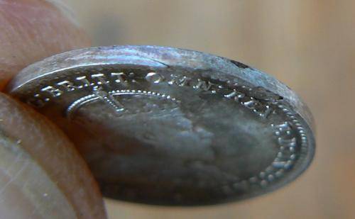 A piece of metal is missing from the coin at the top of the obverse, as can be seen on the photo below.