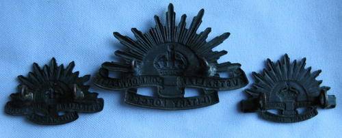 AUSTRALIAN COMMONWEALTH FORCES CAP & COLLAR BADGES-LUGS INTACT