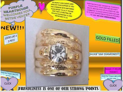 AUSTRALIAN DESIGN SWAROVSKI ELEMENTS GOLD FILLED RING LOOKS LIKE 5 PIECE WITH SIM DIAM SIZE 17&19