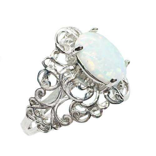 ORNATE AUSTRALIAN WHITE FIRE OPAL RING SIZE 10