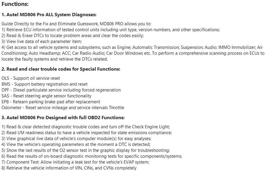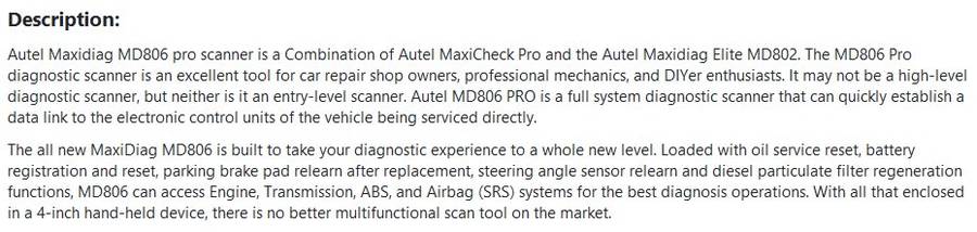 Autel Maxidiag MD806 pro scanner is a Combination of Autel MaxiCheck Pro and the Autel Maxidiag Elite MD802. It is an excellent tool for car repair shop owners, professional mechanics, and DIYer enthusiasts.