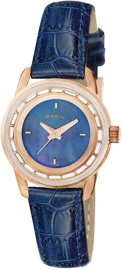 AUTHENTIC BREIL CRYSTAL ACCENTED BLUE MOTHER OF PEARL ROSE GOLD LADIES WATCH