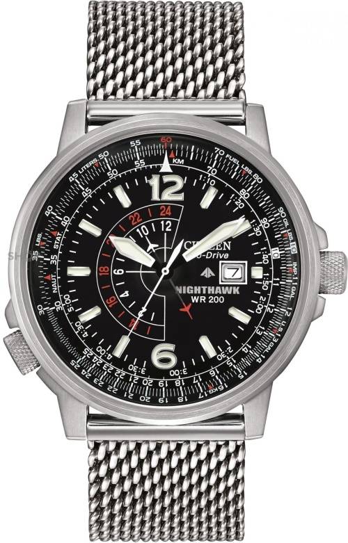 AUTHENTIC CITIZEN ECO-DRIVE NIGHTHAWK PILOT STAINLESS STEEL MESH BAND MENS WATCH
