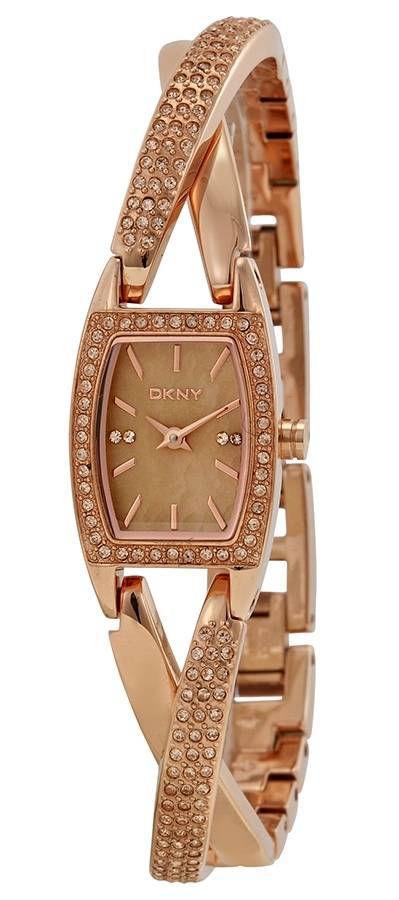 AUTHENTIC DKNY CROSSOVER CRYSTAL ACCENTED ROSE GOLD LADIES WATCH
