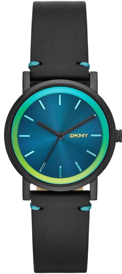 AUTHENTIC DKNY SOHO BLUE DIAL BLACK LEATHER LADIES WATCH