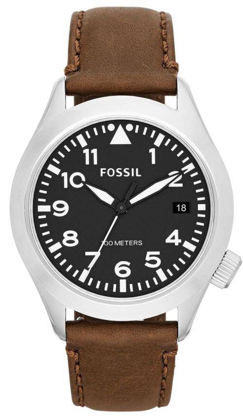 AUTHENTIC FOSSIL AEROFLITE BROWN LEATHER MENS WATCH