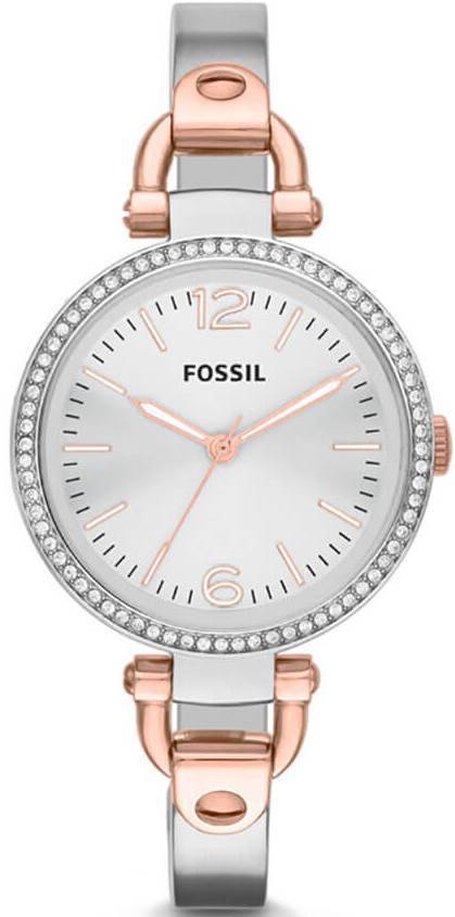 AUTHENTIC FOSSIL GEORGIA CRYSTAL ACCENTED TWO TONE STAINLESS STEEL LADIES WATCH