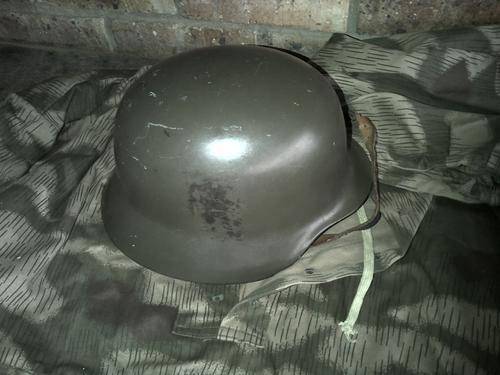 You are bidding on one authentic German helmet from just after WW2. These helmets were issued to the post-war German Border Police units, and were modeled on the war-time M40 helmets as used by the Wehrmacht and the Waffen-SS.