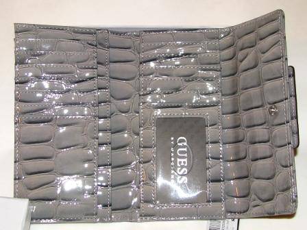 New Collection!! - An exquisite wallet to carry on for you and make your days be more organized. Made from soft vinyl outer with croc designed. Polished silver-toned hardware at front with GUESS engraved. Snap closure. Interior has 12 card pockets, 1 clear ID window, 3 slip pockets for bills, and back zipper pocket for coins. Limited Edition!!!