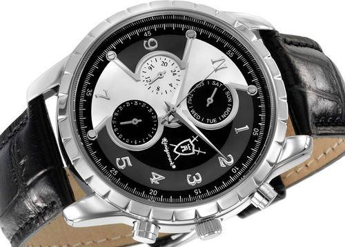 +- 59 Gram - Diameter +- 44.5mm without crown - +- 47.5mm with crown - Thickness +-9 mm Hours. Hands colour S/Steel. Minutes, Seconds. - Stainless Steel, polished Mineral Crystal - Three mini faces on main face with S/S hands, - Watchband Geniune Leather with buckle clasp to fit up to 19.5 cm -
