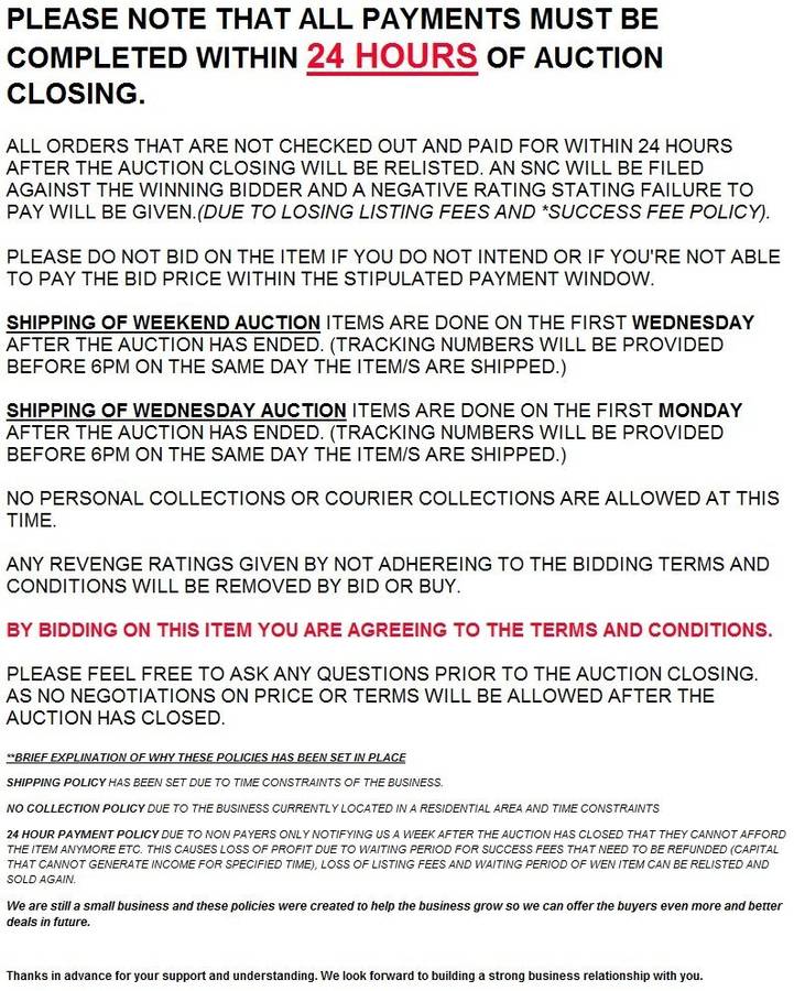 R35.00 Standard shipping using one of our trusted couriers applies to most areas in South Africa. Some areas may attract a R30.00 surcharge. This will be calculated at checkout if applicable.