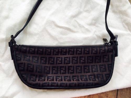 Authentic Original FENDI Zucca Pattern Shoulder Bag Canvas Leather