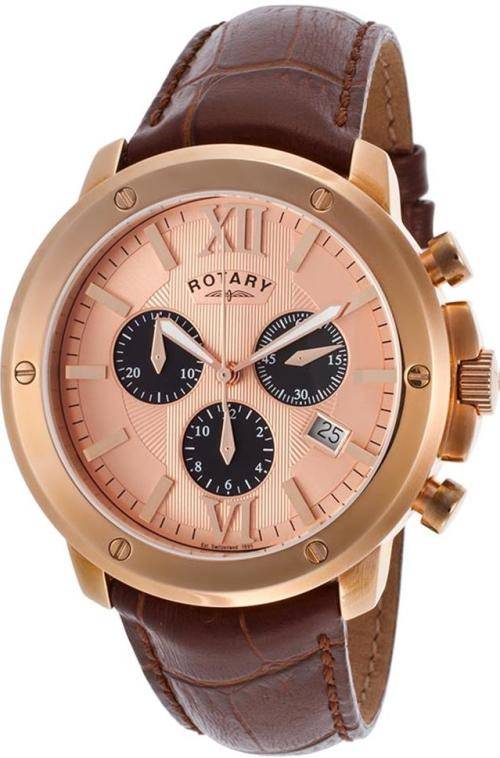 AUTHENTIC ROTARY ROSE GOLD DIAL CHRONOGRAPH MENS WATCH