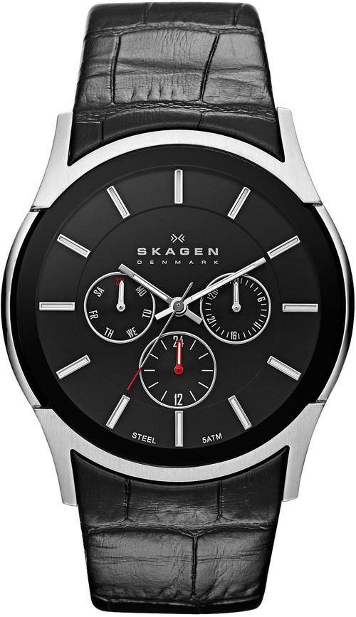 AUTHENTIC SKAGEN DENMARK BLACK LEATHER MULTIFUNCTION MENS WATCH