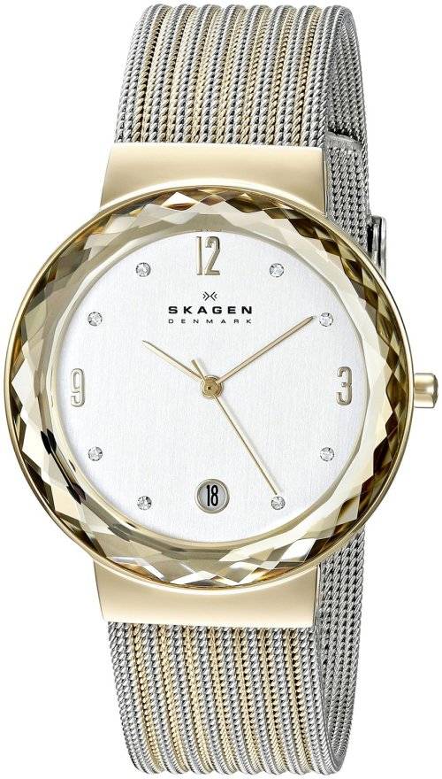 AUTHENTIC SKAGEN DENMARK CRYSTAL ACCENTED TWO TONE LADIES WATCH