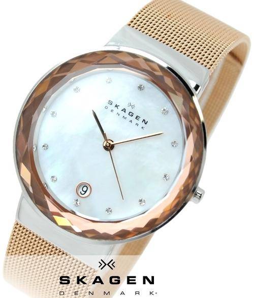 AUTHENTIC SKAGEN DENMARK ROSE GOLD MOTHER OF PEARL FACETED GLASS LADIES WATCH