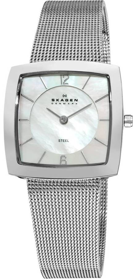 AUTHENTIC SKAGEN DENMARK STAINLESS STEEL MOTHER OF PEARL LADIES WATCH