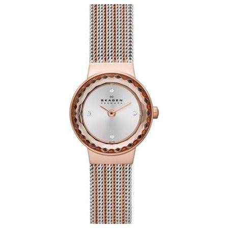 AUTHENTIC SKAGEN DENMARK TWO TONE CRYSTAL ACCENTED FACETED GLASS LADIES WATCH