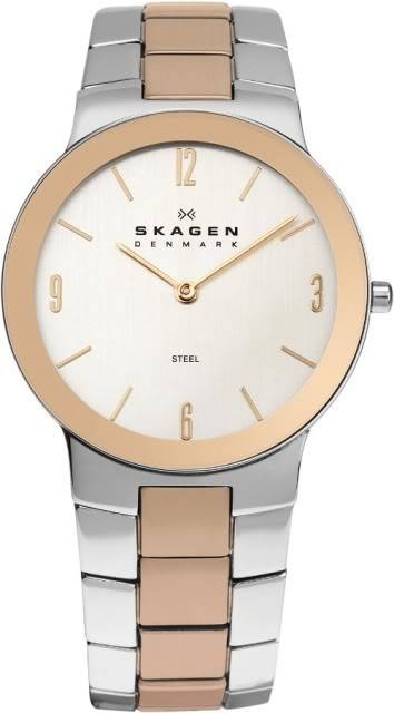 AUTHENTIC SKAGEN DENMARK ULTRA SLIM TWO TONE STAINLESS STEEL MENS WATCH