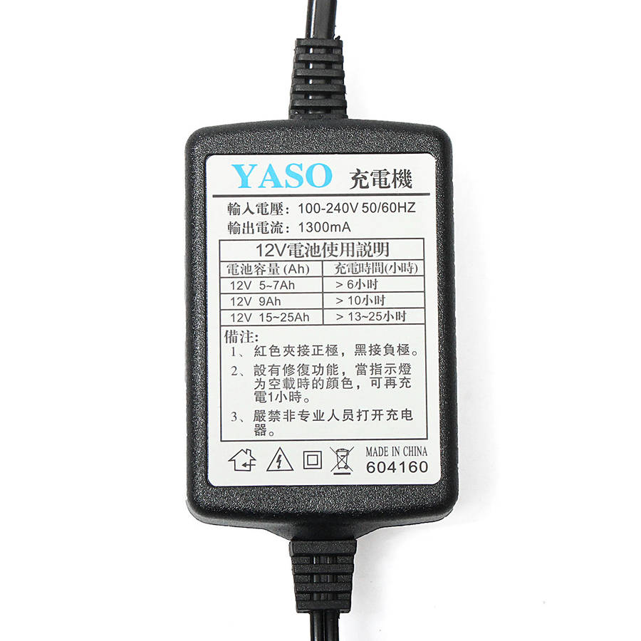 Package weight: 0.13 kg Feature: Short circuit protection (LED goes out, charging stops). Wrong connection protection (LED turns red, charging stops). Battery is full (LED turns red, charging stops). Red clip is connected to the positive, black is connected to the negative. With a repair function, when the light is no-load color, rechargeable 1 to 10 hours. Two-color light instructions, overcharge protection, full automatic stop. With reverse polarity protection, not afraid of short circuit. For 25Ah the following batteries. 12V 5-7AH takes about 6 hours. 12V 9AH takes about 10 hours. 12V 15-17AH takes about 13-15 hours. Specification: Color: Black Plug: US Plug Input: AC 100-240 V, 50-60HZ Output: DC 12V 1.30A Float charge voltage: 14.2V ± 0.5V Constant voltage output voltage: 13.8V ± 0.5V Constant current charging current: 0.85-1.25A Conversion current: 450-550mA DC maximum output power: 13W Efficiency: > 84% (maximum output voltage, full load) LED indicator: Green = charging. Red = Battery full Dimension: 76 x 48 x 30mm Power Wire length: 48.5cm Input Wire length: 65cm Output Wire length: 65cm Package Included: 1 X Battery Car Charger Notice: 1.Due to different producing batches, product details might be a little different. If you minding the difference, please buy it carefully. 2.Please allow 1-3CM differs due to manual measurement. 3.Due to the different display and different light, the picture may not reflect the actual color of the item. Thanks for your understanding.