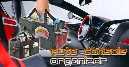 Roomy polyester tote has a large center storage area surrounded by 3 mesh exterior pockets plus 3 slotted pockets for CDs. Keep everything within easy reach. Hook-n-loop tabs secure unit to car floor so items don't roll or spill. Has webbed handles for easy carrying or transferring to another vehicle. Inner compartment measures: 7.5"W x 16"L x 7.75"H (inches).