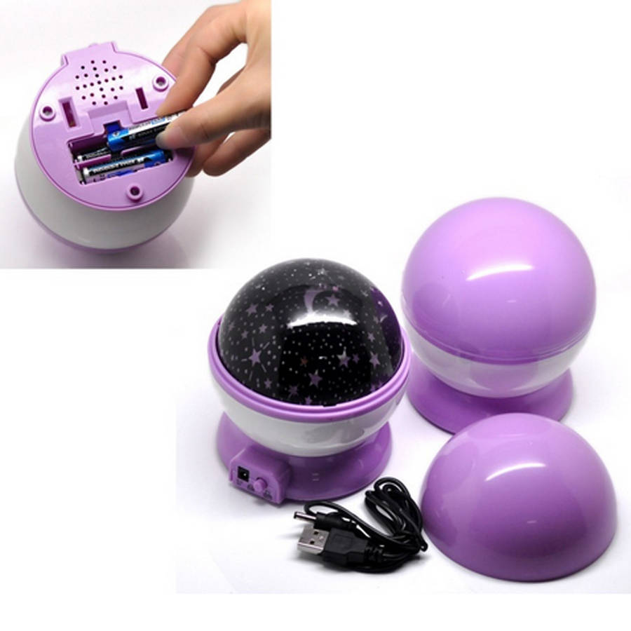 Description: Auto-rotate Creative Stars Projector Lamp Romantic Moon Stars Night Lights 360 degree rotation,amazing feelings. Has moon and stars,get you into a space It can be powered by USB cable(Included),or use 4 x AAA battery(Not Included) A great gift for you children,or maybe your beautiful wife. You can have a dinner under a starry sky. 4 colors to choose. The universe is in your home Information: Power By : USB / Battery Size : 8.5 x 8.5 x 10cm Color : Pink, Green, Purple, Blue Notice:There`s a little bit sound with the motor when it`s working,pls consider about it. Package Included: 1 x Stars projection 1 x USB cable