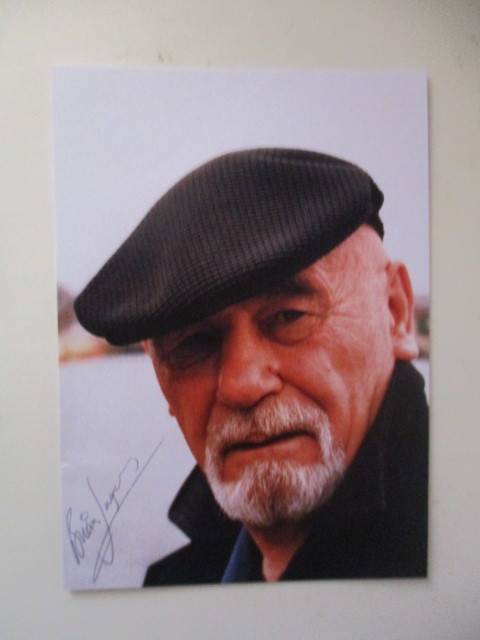 AUTOGRAPHED SIGNED BRIAN JAQUES ABOUT POSTCARD SIZE AND LETTER THE RED WALL SERIES AUTHOUR
