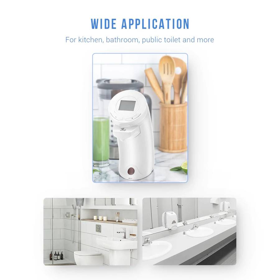KCASA Automatic Touchless Electric Soap Dispenser White 200ml Capacity For Bathroom Kitchen - Built-in infrared smart sensor, just need 0.5 seconds induction time to make liquid out. - 200ml capacity, high quality ABS construction, durable to use. - Fully automatic and touch-free operation, to avoid the second cross-infection. - Adjustable selector lets you choose the desired amount of liquid. - LCD screen shows the dispense amount, remaining liquid level and battery power. - Removable drip-tray, can catch any residual droplets. - Flip-up top reveals a large opening for easy refilling. - Have a tray in the bottom, can avoid shampoo flow outside. - Support wall mounted function. - Rinse cycle allows for easy cleaning. - Innovative non-drip design, eliminate waste and countertop mess. - Ideal for dispensing shower gel, shampoo, washing lotion, liquid soaps or sanitizers, etc. - Perfect to use at bathrooms, kitchens, office, school, hospital, hotel and restaurant. Specification: