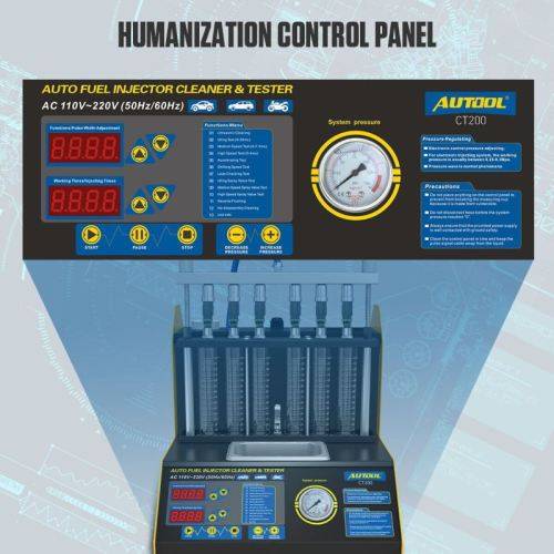 The Autool CT200 is an injector cleaner and tester machine that combines ultrasonic cleaning technology with oil pressure control cleaning and inspection technology. It can simulate various working conditions of the engine to clean and test the injectors. It can support 6-cylinder injectors at the same time, saving time, and efficiency. Also supports testing of fuel injectors for most cars and motorcycles in the market. Since its launch, The CT200 model has been widely received and approved by professional auto repair technicians.